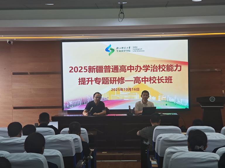 2025年10月14日至20日,来自新疆维吾尔自治区的50位高中校长齐聚浙江金华,参加由浙江师范大学生命科学学院承办的“区培计划(2025)——普通高中办学治校能力提升专题研修”。这是一场为期七天的东西部教育对话,也是一次理念碰撞、经验共享、携手共进的教育实践之旅。