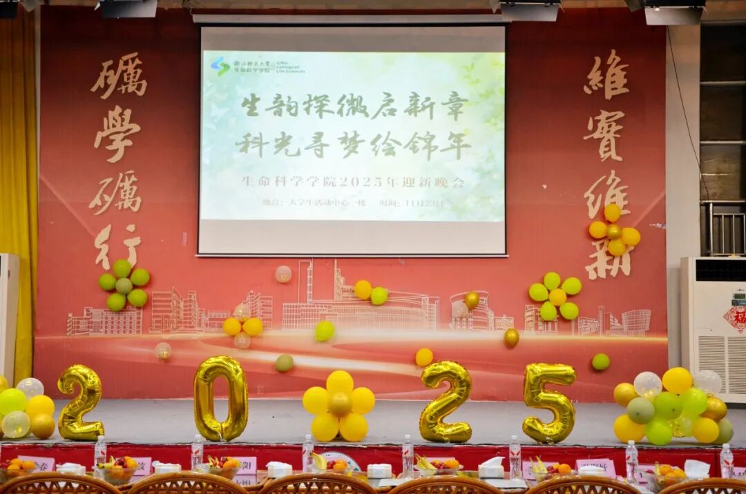 11月23日晚,浙江师范大学生命科学学院“生韵探微启新章,科光寻梦绘锦年”2025年迎新晚会于大学生活动中心一楼多功能厅举行。生命科学学院党委副书记朱慧、学术副院长朱平阳、团委书记兼学工办主任周颖,2025级本科生班主任曹诣斌、黄佳伟、刘立娜、崔海燕以及辅导员江常春、任旭枫、李柏元、吴秋玥出席晚会。全体2025级新生参与晚会,木明哲、龚思源、郑想、吴柯娴主持晚会。