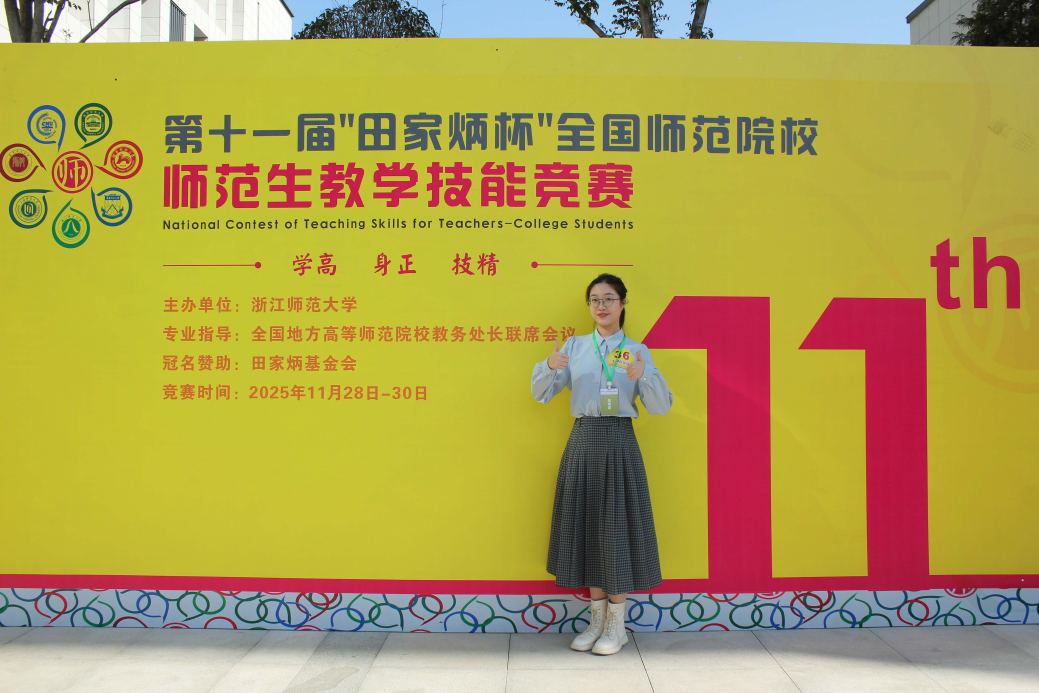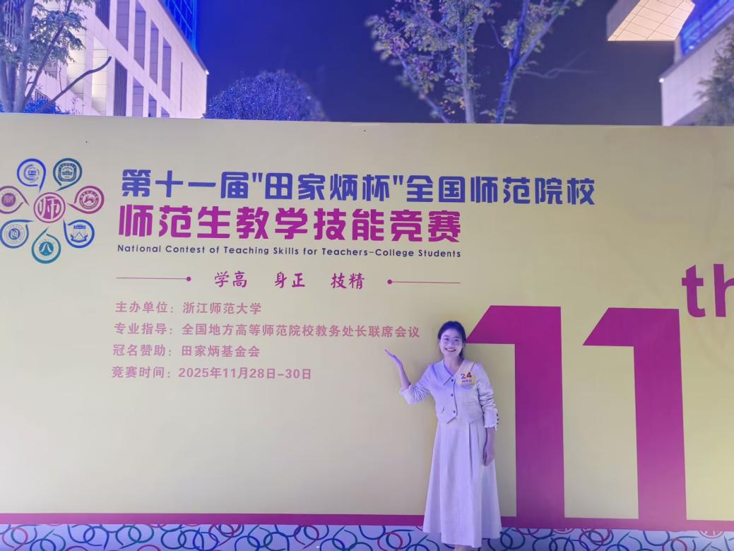 2025年11月28日至30日,第十一届“田家炳杯”全国师范生教学技能竞赛决赛在浙江师范大学圆满举行。在激烈角逐中,我院生物科学专业学生杨晋欢、科学教育专业学生徐立媛凭借扎实功底与出色发挥,分获全国一等奖与二等奖,为学院再添荣光。