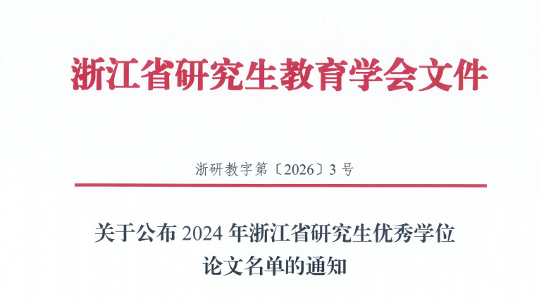 浙江省优秀论文评选是根据《浙江省研究生优秀学位论文和实践成果评选办法(试行)》(浙研教字第[2025]12号)文件精神和原则评选,每年度评选一次,旨在鼓励激发研究生科研能力,提升研究生培养质量,王皓言同学学位论文能够入选,既是肯定了他的科研能力,也体现了本校生态学科人才培养质量的持续进步。