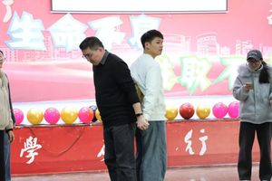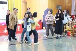 这是团队协作的“大考验”。两位老师背靠背夹住气球,一起向前移动,既要稳又要快。气球有时从中间飞出掉落,惹得大家哈哈大笑;迅速到达终点的组合则收获了全场掌声。