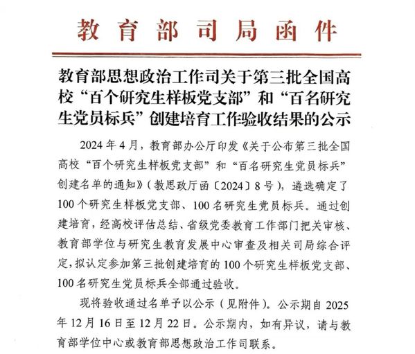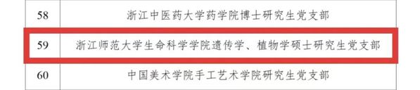 日前,教育部公布第三批全国高校“百个研究生样板党支部”创建培育工作验收通过名单,浙江师范大学生命科学学院遗传学、植物学硕士研究生党支部成功通过验收,荣列其中。