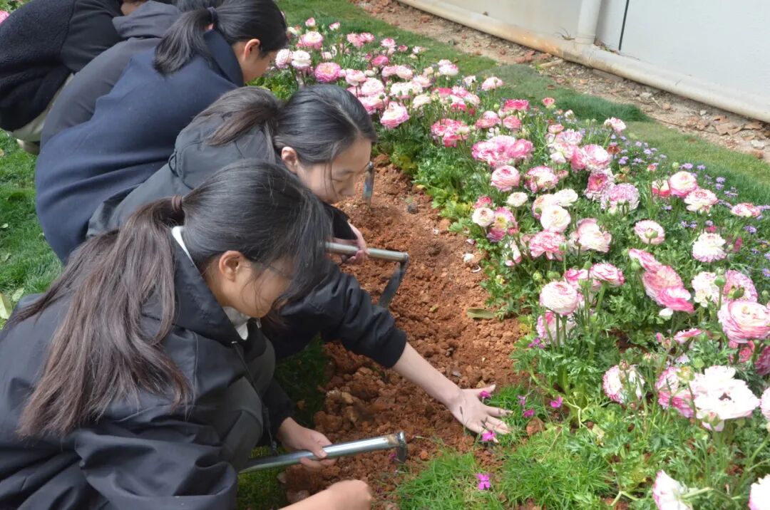阳光洒在实践基地,师生们忙碌的身影与刚刚栽下的花苗相映成趣。朱毅峰俯身与同学们一同培土,不时询问花苗的品种特性和养护要点;孙梅好一边示范种植一边讲解植物学知识;李恒则与同学们交流劳动的感受,鼓励大家多走出教室、亲近自然。劳动间隙,师生们或讨论专业,或畅谈理想,欢声笑语洋溢在基地的每一个角落。