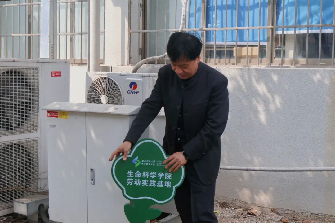 种植之后,朱毅峰为新植的学院景观带插上“劳动教育实践基地” 的立牌,这标志着学院劳动教育有了新的实践阵地。这块牌匾不仅是对今天活动的见证,更是学院深入推进“五育并举”、强化劳动育人的重要举措。