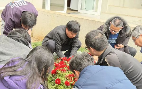 阳光洒在实践基地,师生们忙碌的身影与刚刚栽下的花苗相映成趣。朱毅峰俯身与同学们一同培土,不时询问花苗的品种特性和养护要点;孙梅好一边示范种植一边讲解植物学知识;李恒则与同学们交流劳动的感受,鼓励大家多走出教室、亲近自然。劳动间隙,师生们或讨论专业,或畅谈理想,欢声笑语洋溢在基地的每一个角落。