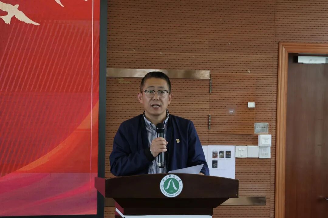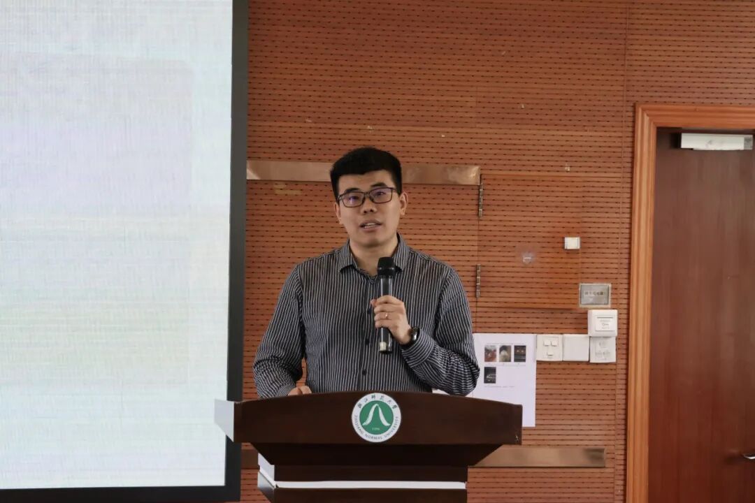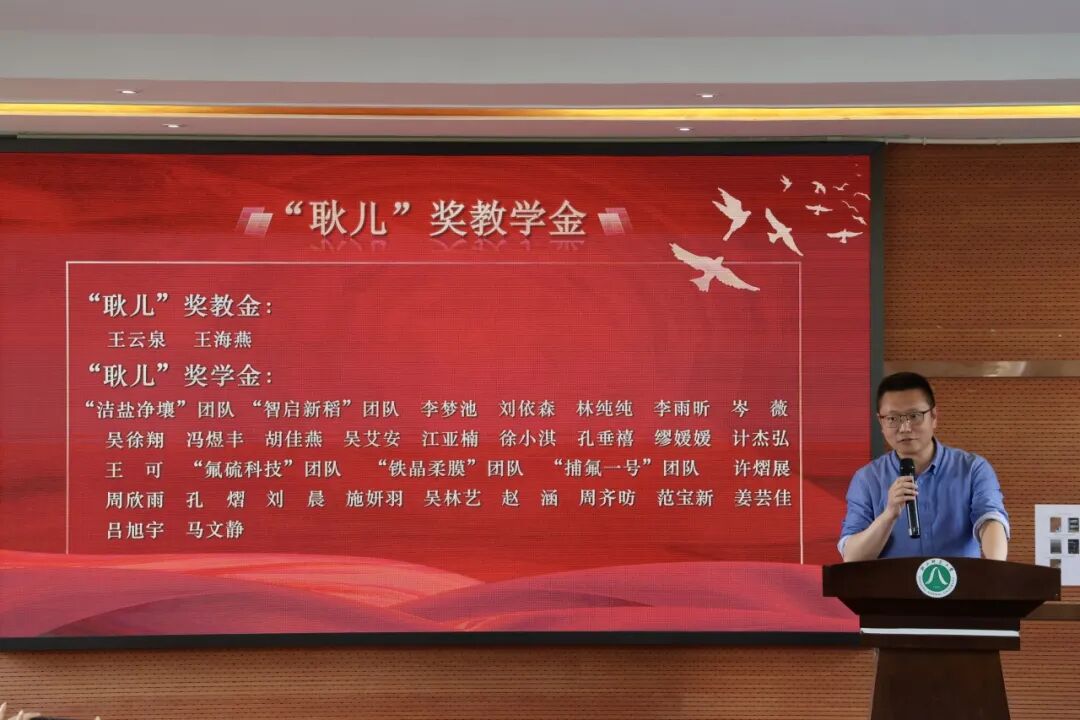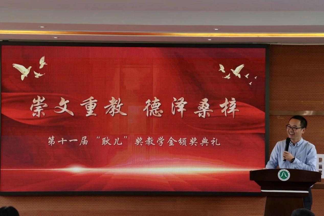“耿儿”奖教金获得者、生命科学学院教师王云泉作教学经验分享。他介绍了自身教学科研工作情况,分享了“知识-实践-情感”三位一体的教学理念,通过植物学课堂与野外实习融合,深耕课程思政,指导学生斩获多项学科竞赛奖项,展现了一线教师潜心育人、严谨治学的精神风貌。